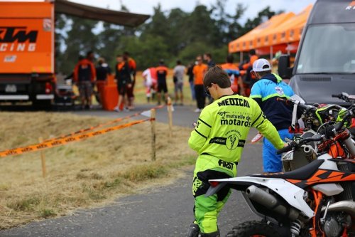 KTM Mania 2018… Direction les berges du lac de Naussac, à côté de Langogne en Lozère. Le MVHL48 et Jean Luc Miroir ont encore une fois bien fait les choses, une belle fête KTM en perspective. Beau temps, bonne bouffe, bon couchage, de la moto, ça va être le top… 5 Spéciales le Samedi et 4 le Dimanche. Paul et Emanuel sont sur place dès le vendredi, afin d’assurer le médical sur les essais des KTM 2019. Le reste de l’équipe arrivant entre vendredi soir et samedi matin. AMIS est un peu épuisé, cela fait 4 épreuves en 5 week-end, c’est chaud chaud… Merci à Max d’être venu médicaliser en fixe Samedi et Lucas également en fixe le Dimanche, vous nous avez donné un peu d’air les gars… Motos au parc, briefing, petite bière, repas et direction le gite. Nous allons suivre les aventures du n°544, Ambroise le frangin de Paul qui fait sa 1ère course…. Samedi : Lever 7h, on est large…. Départ des AMIS entre 8h30 et 10h, on se réparti sur les SP, ainsi qu’au milieu des pilotes. 1er blessé, le boss du staff KTM. Ils sont comme ça chez KTM, le patron donne de sa personne et montre ce qu’il ne faut pas faire… La journée se déroule bien, les pilotes sont frais, le parcours typé soft ne génère pas trop de chutes. C’est un peu plus compliqué en fin de journée, la poussière est dense, certains vont goûter le sol… Malgré la fatigue, il nous faut assurer la bobologie au dispensaire. Ce sera pizzas à gogo, ampoules, plaies diverses plus ou moins moches… Il y a eu quelques chutes sur le goudron en liaison, et les plaies pleines de bitumes sont dures à nettoyer. Tous les binômes ont fait le job… Bilan de la journée, une quinzaine d’interventions. Le 544 est à l’arrivée, un poil en retard, mais bien là… Il semblerait que ses bras soient plus que ce matin… Max rentre sur Aubenas pour assurer sa garde, merci à toi… Nous terminons par un bain réparateur dans le lac, afin d’être au top pour la soirée KTM. Apéro, repas, concert tout y est !!! Direction le gîte, où nous attend une bonne verveine. Il est 1h du matin, on arrête plus Denis, Olive est égal à lui-même, Paul est un vrai AMIS, et Franck commence à raconter des conneries, il est temps de dormir… Dimanche : Lever 7h, on est toujours large…. On prend les mêmes et on recommence. Les pilotes sont plus fatigués, ça tombe plus en liaison comme en spéciale. Les blessures sont plus sérieuses, fracture de tibia, luxations diverses, TC, Benjamin demandera une évacuation d’un trauma thoracique par hélicoptère (on s’ennuie pas avec Benj’…). Les AMIS sont sollicités, mais nous gérons, c’est chaud… Il est 16h, les binômes se regroupent au camion pour les derniers soins. Merci à Lucas pour cette première AMIS, nous espérons te revoir, cela semble t’avoir plu. Mais où est le 544 ??? Il est sur la dernière spéciale avec son frangin pour un dernier test d’accélération… Il a été brave, et terminé sa 1ère course, chapeau bas !!!! C’est fini, on charge, direction la maison… Prochaine étape dans 15 jours pour le France de Moirans. Place aux photos :