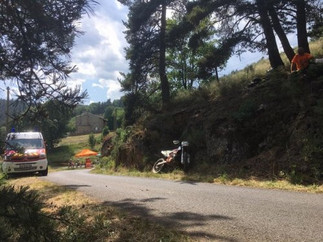 KTM Mania 2019… Le lac de Naussac à côté de Langogne nous accueille une nouvelle fois. Le MVHL48 et Jean Luc Miroir ont encore une fois bien fait les choses, une belle fête KTM en perspective. Beau temps, bonne bouffe, bon couchage, de la moto, ça va être le top… 5 Spéciales le Samedi et 4 le Dimanche. Yann et Stéph’ sont sur place dès le vendredi, afin d’assurer le médical sur les essais des KTM 2020. Le reste de l’équipe arrivant dans la soirée. AMIS était sur la Rand’ la semaine précédente, il a fait chaud, il va faire encore chaud ce week end. Motos au parc, briefing, petite bière, repas et direction le gite. Samedi : Lever 7h, on est large…. Départ des AMIS entre 8h30 et 10h, on se réparti sur les SP, ainsi qu’au milieu des pilotes. La journée se déroule bien, les pilotes sont frais, le parcours typé soft ne génère pas trop de chutes. C’est un peu plus compliqué en fin de journée, la poussière est dense, certains vont goûter le sol… Malgré la fatigue, il nous faut assurer la bobologie au dispensaire. Ce sera pizzas à gogo, ampoules, plaies diverses plus ou moins moches… Tous les binômes ont fait le job… Bilan de la journée, une quinzaine d’interventions. Nous terminons par un bain réparateur dans le lac, afin d’être au top pour la soirée KTM. Apéro, repas, concert tout y est !!! Direction le gîte, où nous attend une bonne verveine. Dimanche : Lever 7h, on est toujours large…. On prend les mêmes et on recommence. Les pilotes sont plus fatigués, ça tombe un peu plus en liaison comme en spéciale. Les AMIS sont sollicités, mais nous gérons, c’est chaud… Il est 16h, les binômes se regroupent au camion pour les derniers soins. C’est fini, on charge, direction la maison… Prochaine étape dans 3 semaines pour le France du Merzer. Merci à nos partenaires, qui nous permettent épreuve après épreuve de médicaliser dans de bonnes conditions. Stéph’ Place aux images...